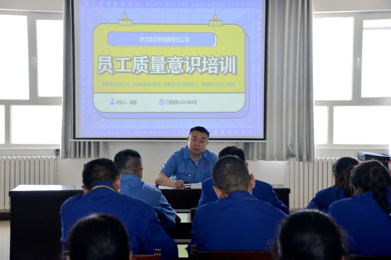2024年4月19日下午,伊力特印務有限責任公司在三樓電教室舉辦了一場員工質量意識培訓會議。此次會議由印務公司董事長、總經理宋崇東主持,各車間主任、質檢員、車間機組長及關鍵工序輔助工參加了本次培訓。